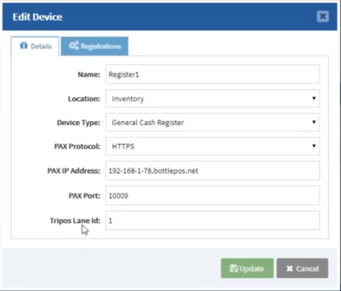 - Select Pax-Application-Name : bottlepos